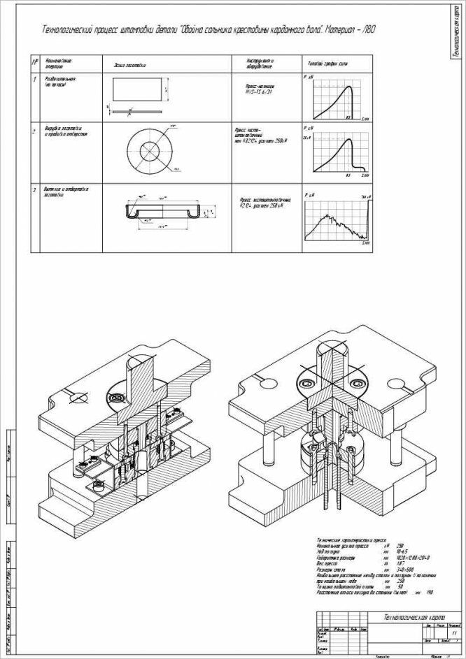 В данной работе был разработан техпроцесс детали «Фланец крепления » . Исследование этого процесса представляет определенный научный интерес и может иметь практическое применение в производстве, так как были спроектированы и исследованы некоторые технологии, применения которых нет в отечественном производстве подобных деталей. Работа состоит из исследовательской, технологической и конструкторской части. В конструкторской части разработаны конструкции штампов для листовой штамповки данной детали и штамповая оснастка. В технологической части разработана технология штамповки детали.