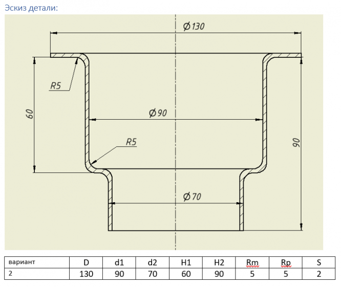 ДЗ: ДЗ 2 Спроектировать технологический процесс вытяжки детали типа “ Двойной колпачёк с фланцем ” - Вар.2