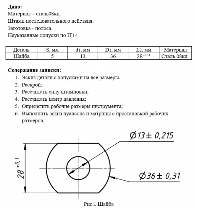 ДЗ 1: Проектирование технологического процесса штамповки детали типа "Шайба" вариант 1