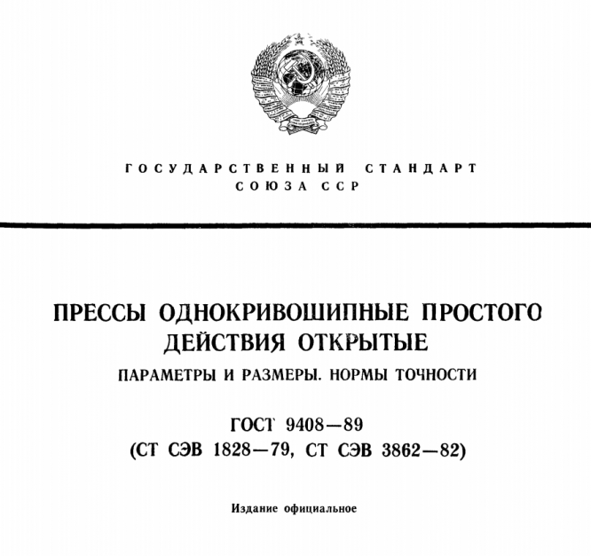 Стандарт: ГОСТ 9408-89 - Прессы однокривошипные простого действия открытые