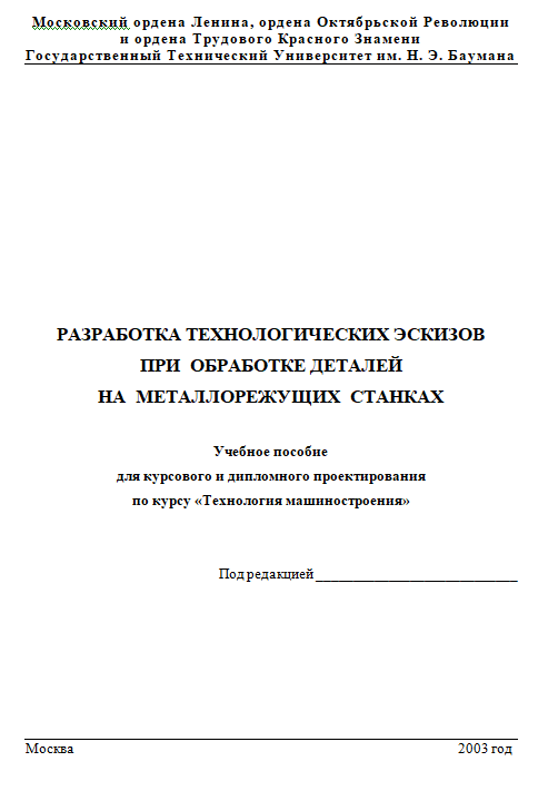 Для студентов МГТУ им. Н.Э.Баумана по предмету Технология машиностроения (ТМ)Учебное пособие - Разработка технологических эскизов при обработке деталей на металлорежущих станкахУчебное пособие - Разработка технологических эскизов при обработке деталей на металлорежущих станках