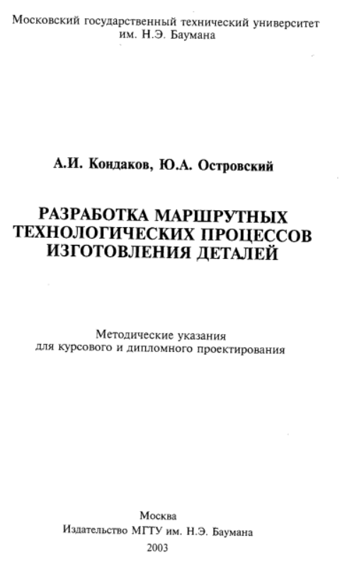 Главная » Учебные материалы » Технология машиностроения (ТМ) » Книги » МГТУ им. Н.Э.Баумана » Несколько классов/семестров » А.И. Кондаков - Разработка маршрутных технологических процессов изготовления деталей