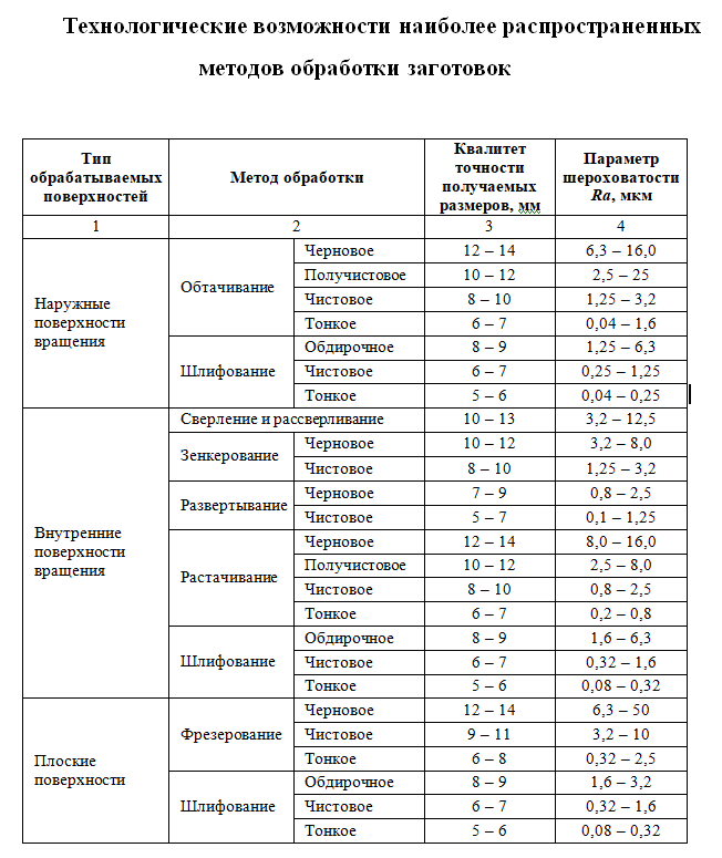 Главная » Учебные материалы » Технология машиностроения (ТМ) » Книги » МГТУ им. Н.Э.Баумана » Несколько классов/семестров » Технологические возможности наиболее распространенных методов обработки заготовок