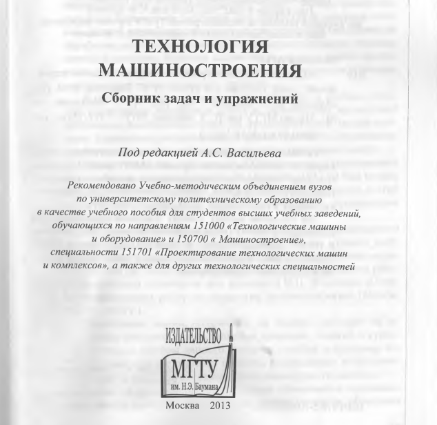 Для студентов МГТУ им. Н.Э.Баумана по предмету Технология машиностроения (ТМ)ТМ сборник задач (Васильев А.С.)ТМ сборник задач (Васильев А.С.)