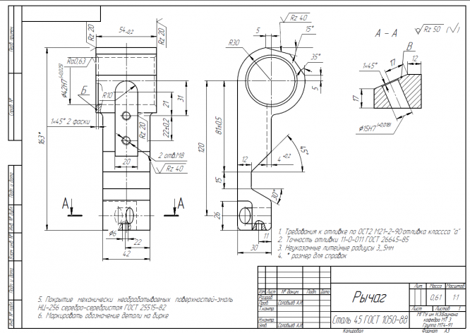 Для студентов МГТУ им. Н.Э.Баумана по предмету Технология машиностроения (ТМ)Разработка технологического процесса изготовления детали «Рычаг» Разработка технологического процесса изготовления детали «Рычаг»