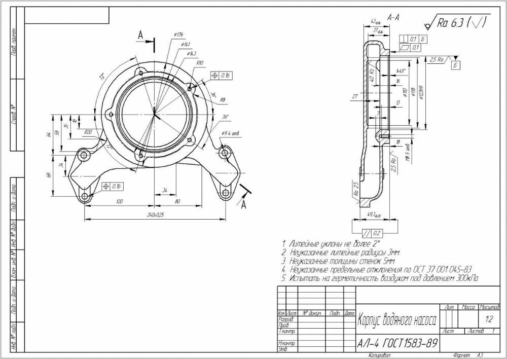 Для студентов МГТУ им. Н.Э.Баумана по предмету Технология машиностроения (ТМ)Корпус водяного насосаКорпус водяного насоса