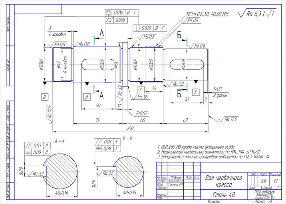 Технические требования, предъявляемые к валу, обуславливаются условиями его эксплуатации. Рассматриваются особые требования, предъявляемые к детали, на которых необходимо заострить внимание при изготовлении.