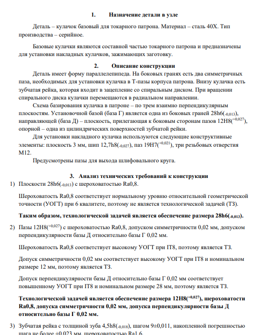 Для студентов МГТУ им. Н.Э.Баумана по предмету Технология машиностроения (ТМ)Разработка технологических процессов механической обработки детали кулачок базовый для токарного патронаРазработка технологических процессов механической обработки детали кулачок базовый для токарного патрона