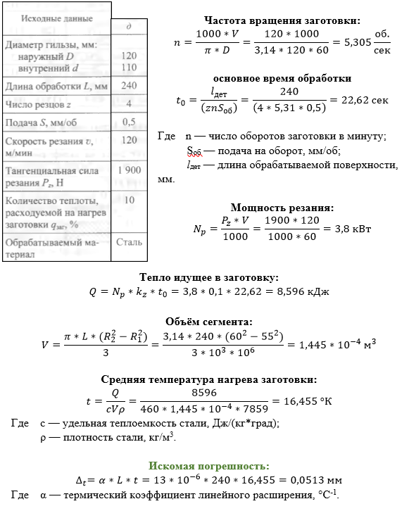 Определить погрешность диаметра гильзы при ее многорезцовом обтачивании, считая температурное поле гильзы постоянным..