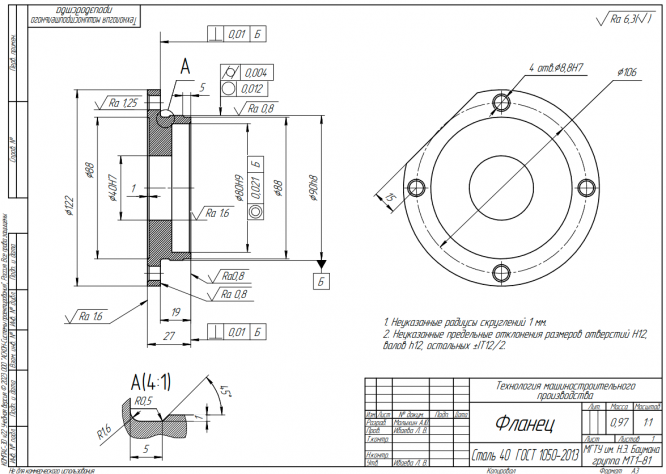 ДЗ 1: Разработка маршрутного технологического процесса вариант 4