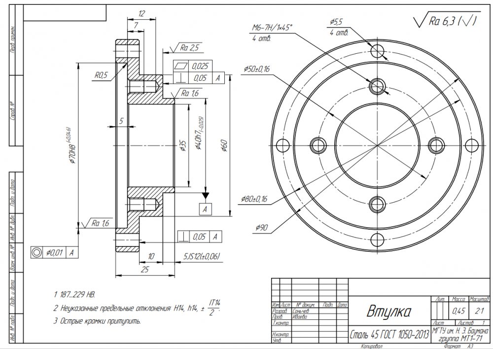 Для студентов МГТУ им. Н.Э.Баумана по предмету Технология машиностроения (ТМ)Разработка маршрутного технологического процессаРазработка маршрутного технологического процесса