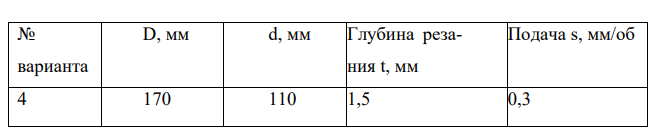 Определить скорость резания, допускаемую режущими свойствами резца, при подрезке торца заготовки диаметром D мм до диаметра d мм для заданных условий обработки. Направление подачи - от периферии к центру.