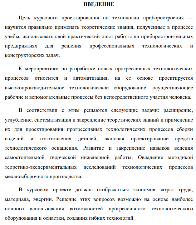 Цель курсового проектирования по технологии приборостроения — научится правильно применять теоретические знания, полученные в процессе учебы, использовать свой практический опыт работы на приборостроительных предприятиях для решения профессиональных технологических и конструкторских задач. К мероприятиям по разработке новых прогрессивных технологических процессов относится и автоматизация, на ее основе проектируется высокопроизводительное технологическое оборудование, осуществляющее рабочие и вспомогательные процессы без непосредственного участия человека
