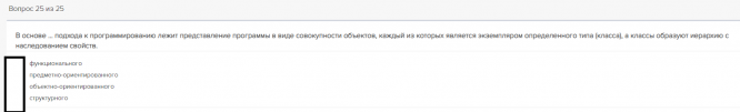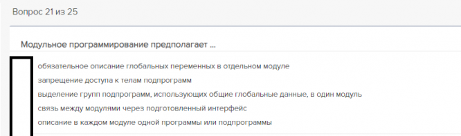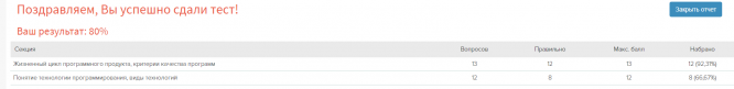 Ответы к контрольной работе 1: Тест 1. Основные понятия технологии программирования 80%