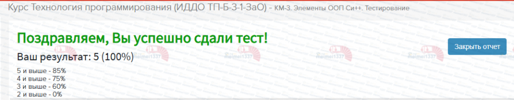 Курс Технология программирования - КМ-3. Элементы ООП Си++. Тестирование - 100%