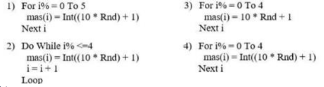 Если сгенерировать случайным образом 5 целых значений для массива объявленного как Dim mas(5) As Integer, получим запись: …