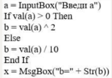 После выполнения программы на VBA (см. ниже) при первоначальном значении а = 10, a = -10 значение переменной b равно …