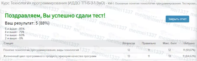 💼 База ответов к тесту КМ-1. Основные понятия технологии программирования (Курс Технология программирования) 📊