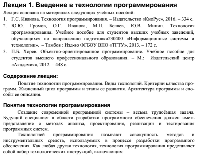 Для студентов ИДДО НИУ «МЭИ» по предмету Технология программированияЛекцииЛекции