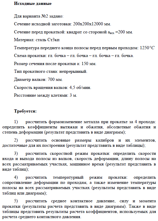 Для студентов МГТУ им. Н.Э.Баумана по предмету Технология производства листового и сортового прокатаДомашнее задание (вариант №2)Домашнее задание (вариант №2)
