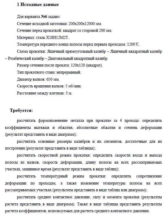 Для студентов МГТУ им. Н.Э.Баумана по предмету Технология производства листового и сортового прокатаДомашнее задание (вариант №6)Домашнее задание (вариант №6)