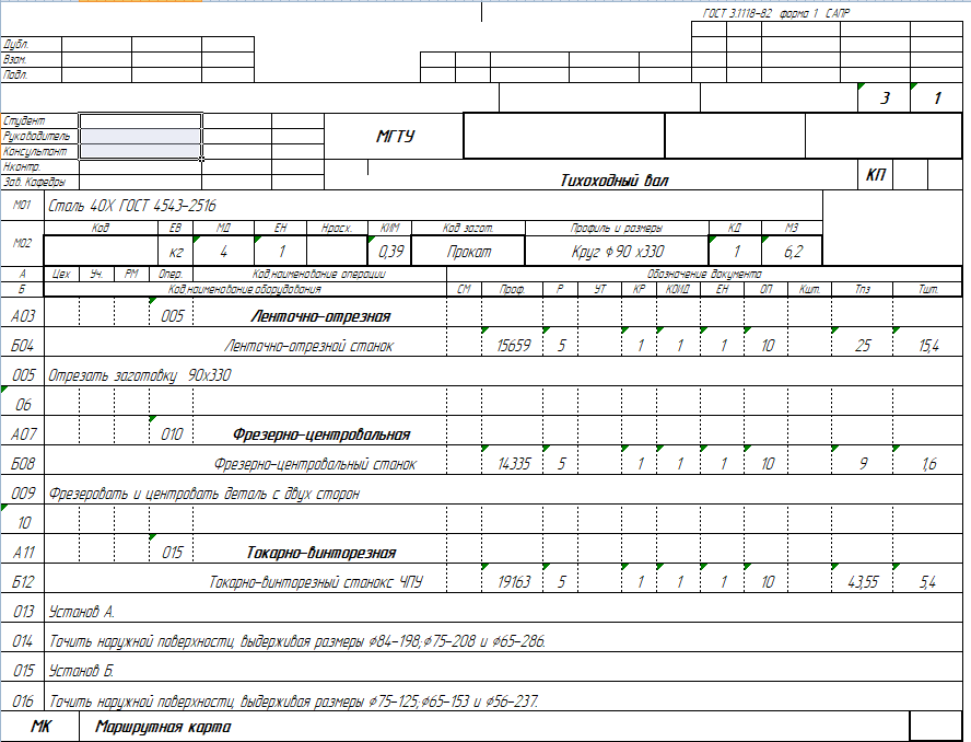 Лист 3 - Маршрутный технологический процесс изготовления детали вала.dwg