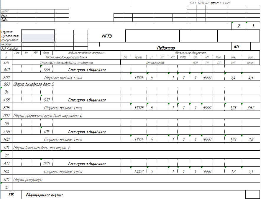Для студентов МГТУ им. Н.Э.Баумана по предмету Технология производства машин (МТ-3)Технологические процессы сборки редуктора и изготовления детали тихоходный валТехнологические процессы сборки редуктора и изготовления детали тихоходный вал