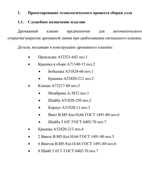 Технологический процесс сборки изделия Клапан дренажный и технологический процесс изготовления детали Корпус