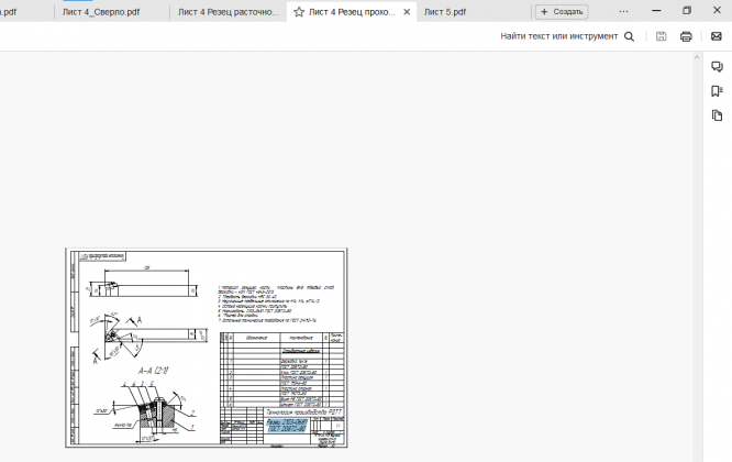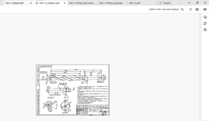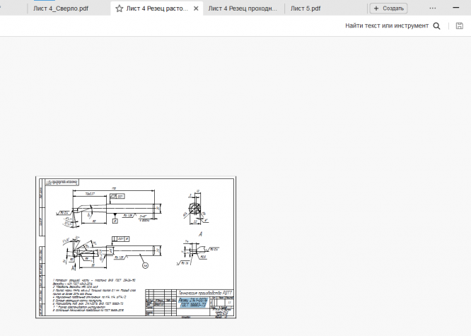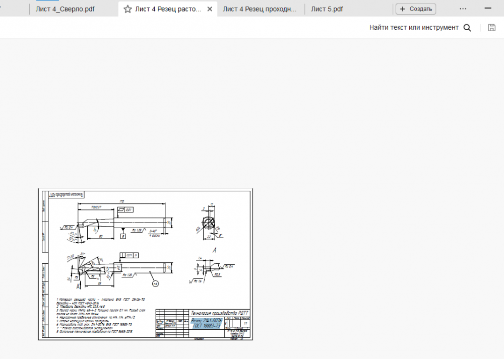 Лист 4 - Фреза 36-1-А-4-178 ГОСТ 32831-2014, Сверло 2301-3652 ГОСТ 10903-77, Резец расточной 2141-0076 ГОСТ 18883-73, Резец проходной 2103-0681 ГОСТ 20872-80.