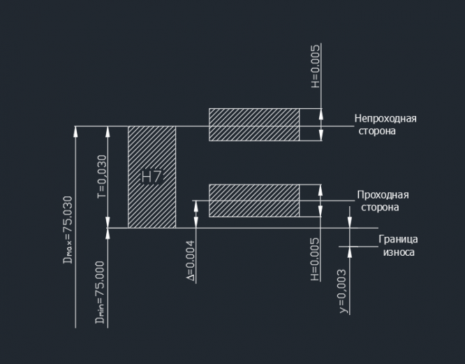 ДЗ: Чертёж - Калибр-пробка ПР-НЕ D=75 H7