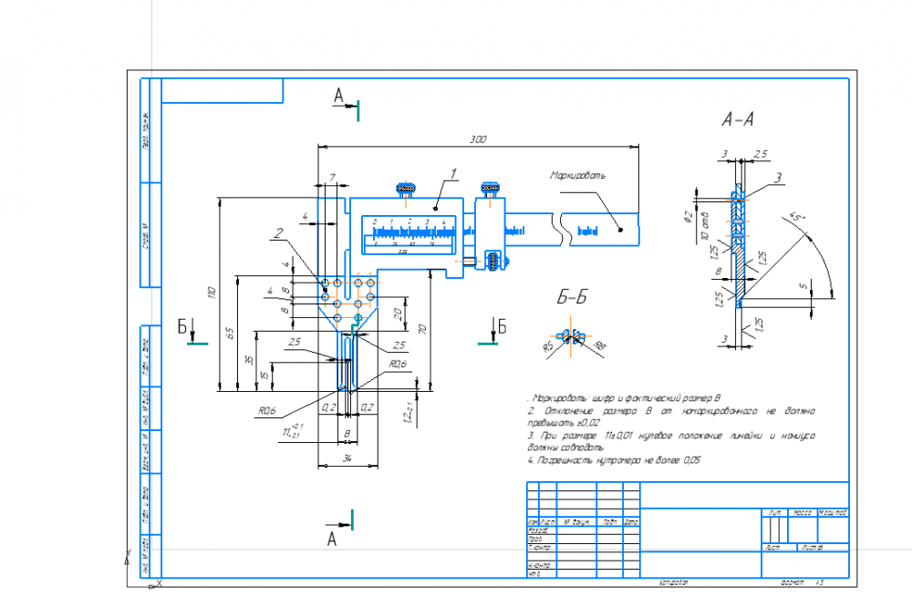 Для студентов МГТУ им. Н.Э.Баумана по предмету Технология производстваЧертеж - ШтангенциркулиЧертеж - Штангенциркули