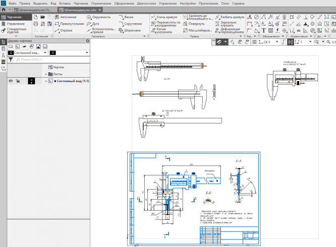 в компасе чертежи Штангенциркуля