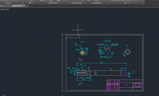 Чертеж - Метчик М10 х 1,5 в автокаде А3