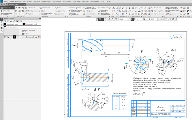 Для студентов МГТУ им. Н.Э.Баумана по предмету Технология производстваЧертёж - Фреза концевая D=16, ВК60МЧертёж - Фреза концевая D=16, ВК60М