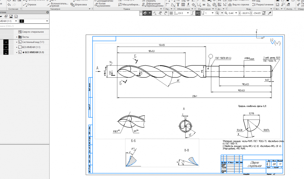 Для студентов МГТУ им. Н.Э.Баумана по предмету Технология производстваЧертёж - Сверло спиральное D=18Чертёж - Сверло спиральное D=18