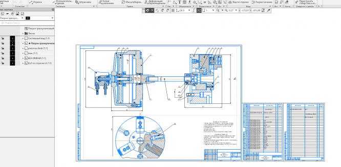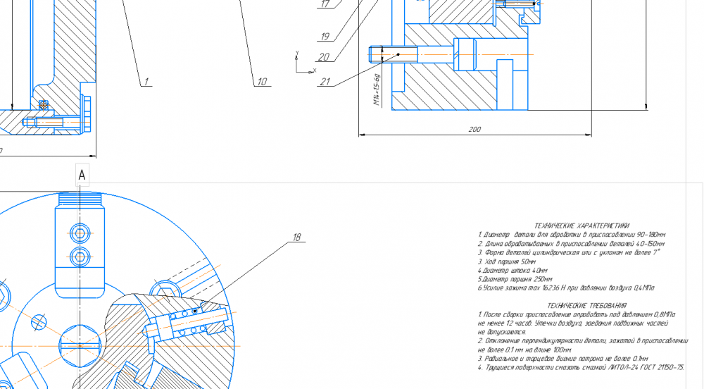 Для студентов МГТУ им. Н.Э.Баумана по предмету Технология производстваЧертёж - Патрон самоцентрирующийся трехкулачковый D=90-180, L=40-150Чертёж - Патрон самоцентрирующийся трехкулачковый D=90-180, L=40-150