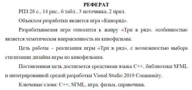Характеристики курсовой работы