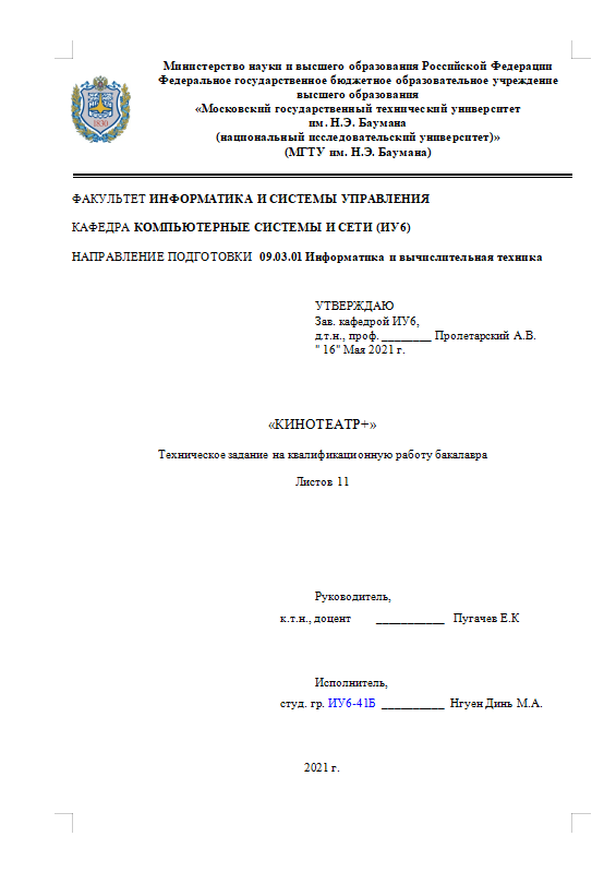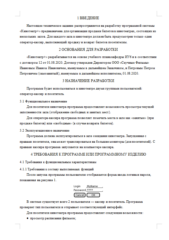 Для студентов МГТУ им. Н.Э.Баумана по предмету Технология разработки программных систем (ТРПС)Техническое задание - КинотеатрТехническое задание - Кинотеатр