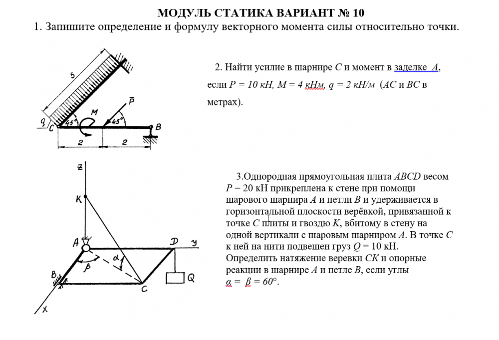 Ответы к контрольной работе: Статика вариант 10