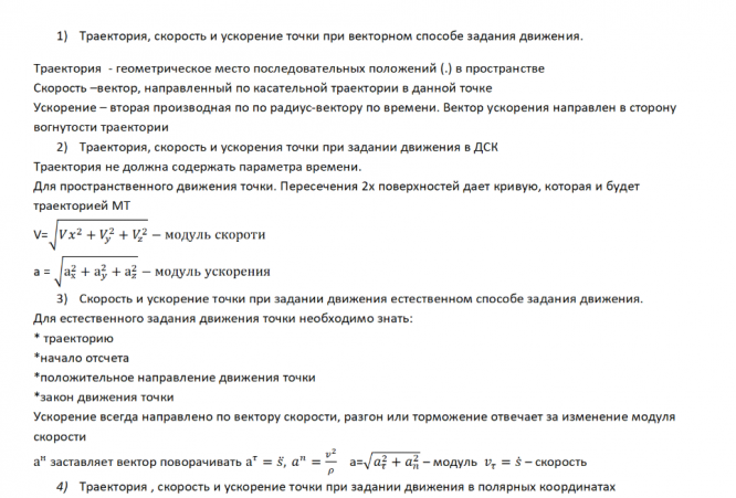 1) Траектория, скорость и ускорение точки при векторном способе задания движения