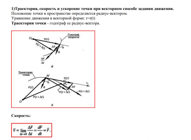 1) Траектория, скорость и ускорение точки при векторном способе задания движения