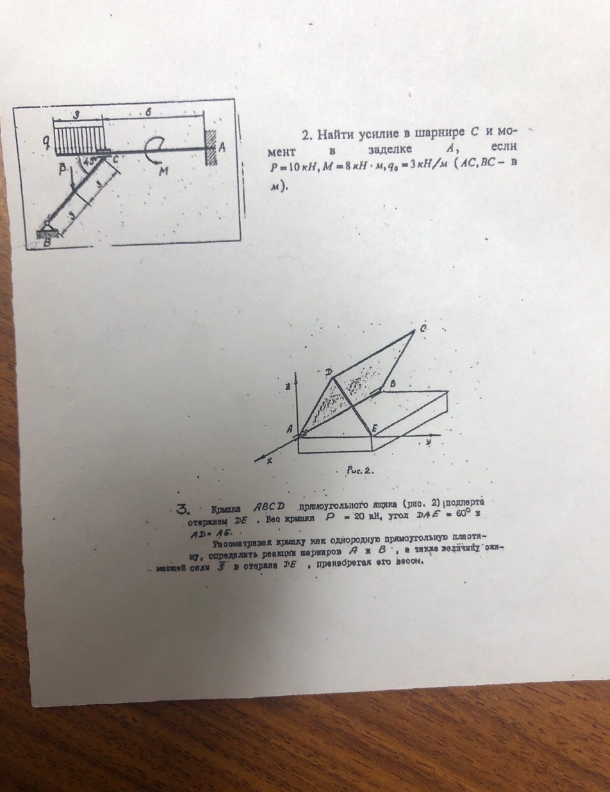 Ответы к контрольной работе: РК "Пространственная статика" Неизвестный вариант Задача №2, задача №3