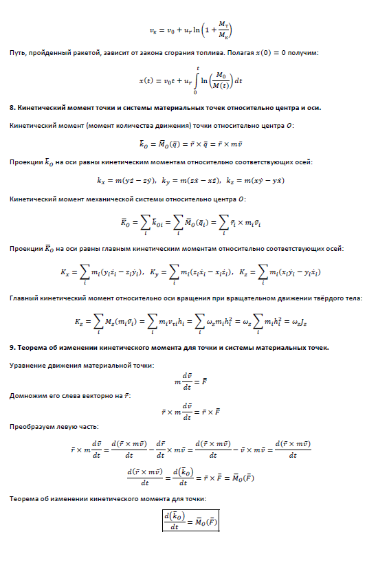 Для студентов МГТУ им. Н.Э.Баумана по предмету Теоретическая механикаТеория к экзаменуТеория к экзамену