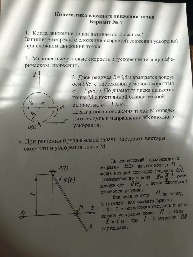 Для студентов МГТУ им. Н.Э.Баумана по предмету Теоретическая механикаРК №3 - Вариант 4 - Кинематика сложного движения точкиРК №3 - Вариант 4 - Кинематика сложного движения точки