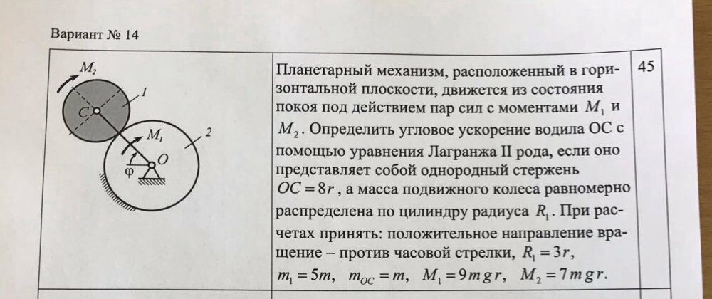 РК №3 - Вариант 14 - Уравнения Лагранжа 2-го рода