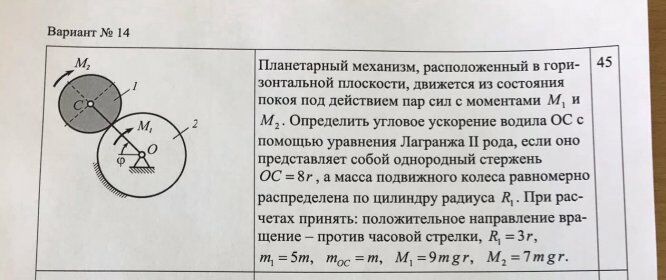 Для студентов МГТУ им. Н.Э.Баумана по предмету Теоретическая механикаРК №3 - Вариант 14 - Уравнения Лагранжа 2-го родаРК №3 - Вариант 14 - Уравнения Лагранжа 2-го рода