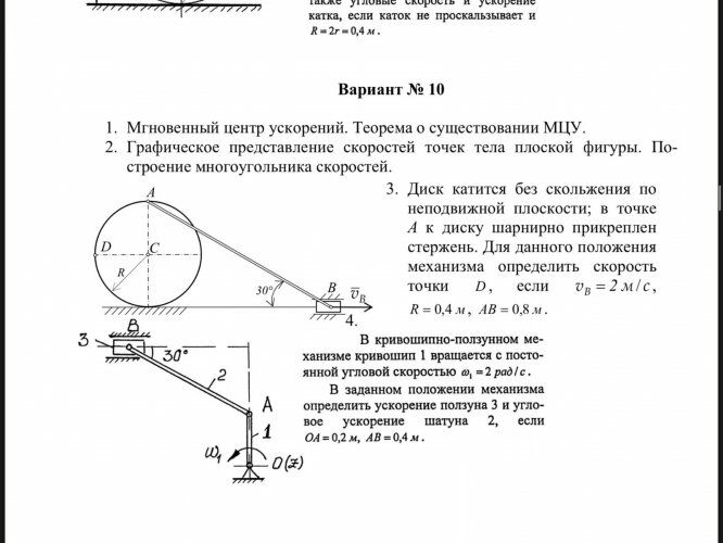 Ответы к контрольной работе 1: Вариант 10 - РК по плоскому движению вариант 10