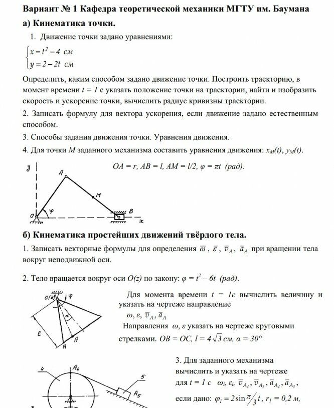 Для студентов МГТУ им. Н.Э.Баумана по предмету Теоретическая механикаРешение билетовРешение билетов