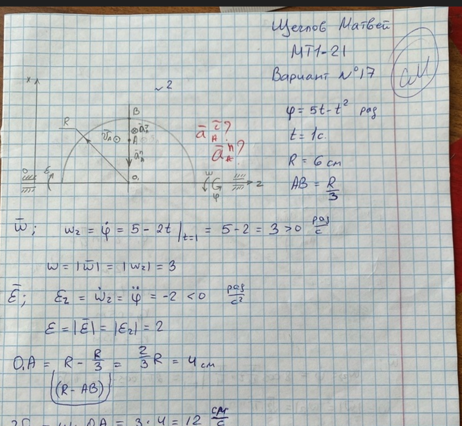 Решения Билет 11 и 17 к РК №1 2022г - Кинематика точки и простейших движений твердого тела -