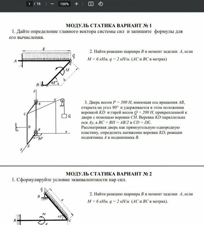 Для студентов МГТУ им. Н.Э.Баумана по предмету Теоретическая механикаРК №4 - СтатикаРК №4 - Статика 2022-10-15СтудИзба